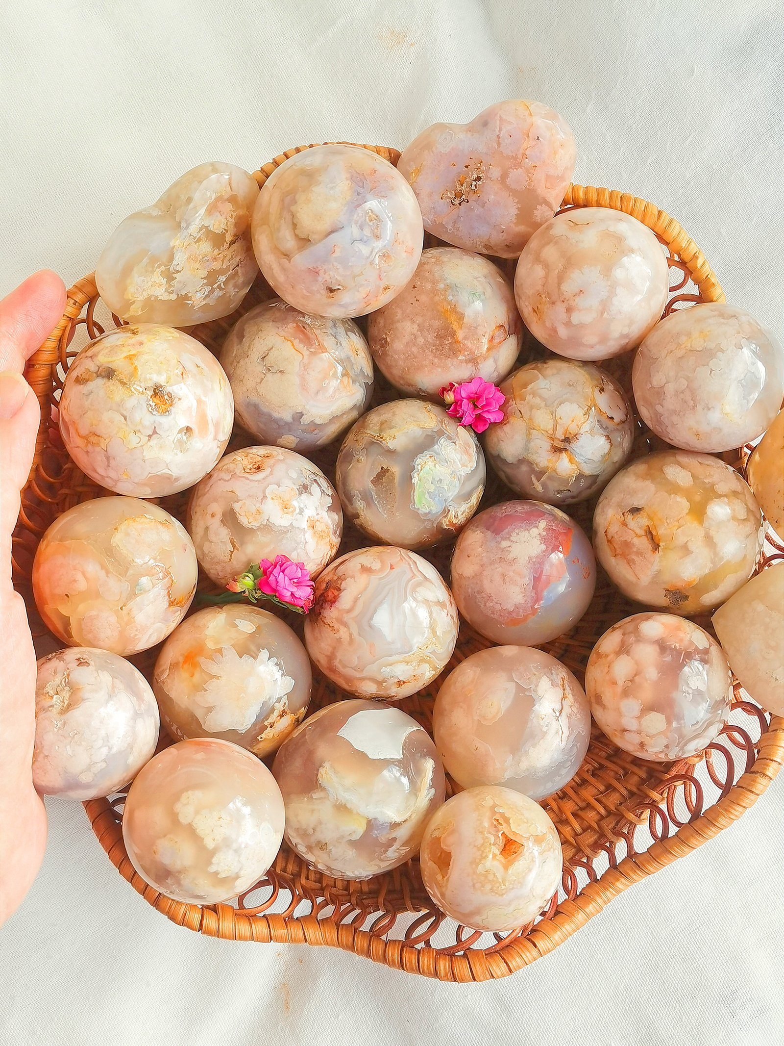 Natural Pink Sakura Agate Sphere and Heart · 24 Styles · Decorative Crystal · Display and Collectible Stone