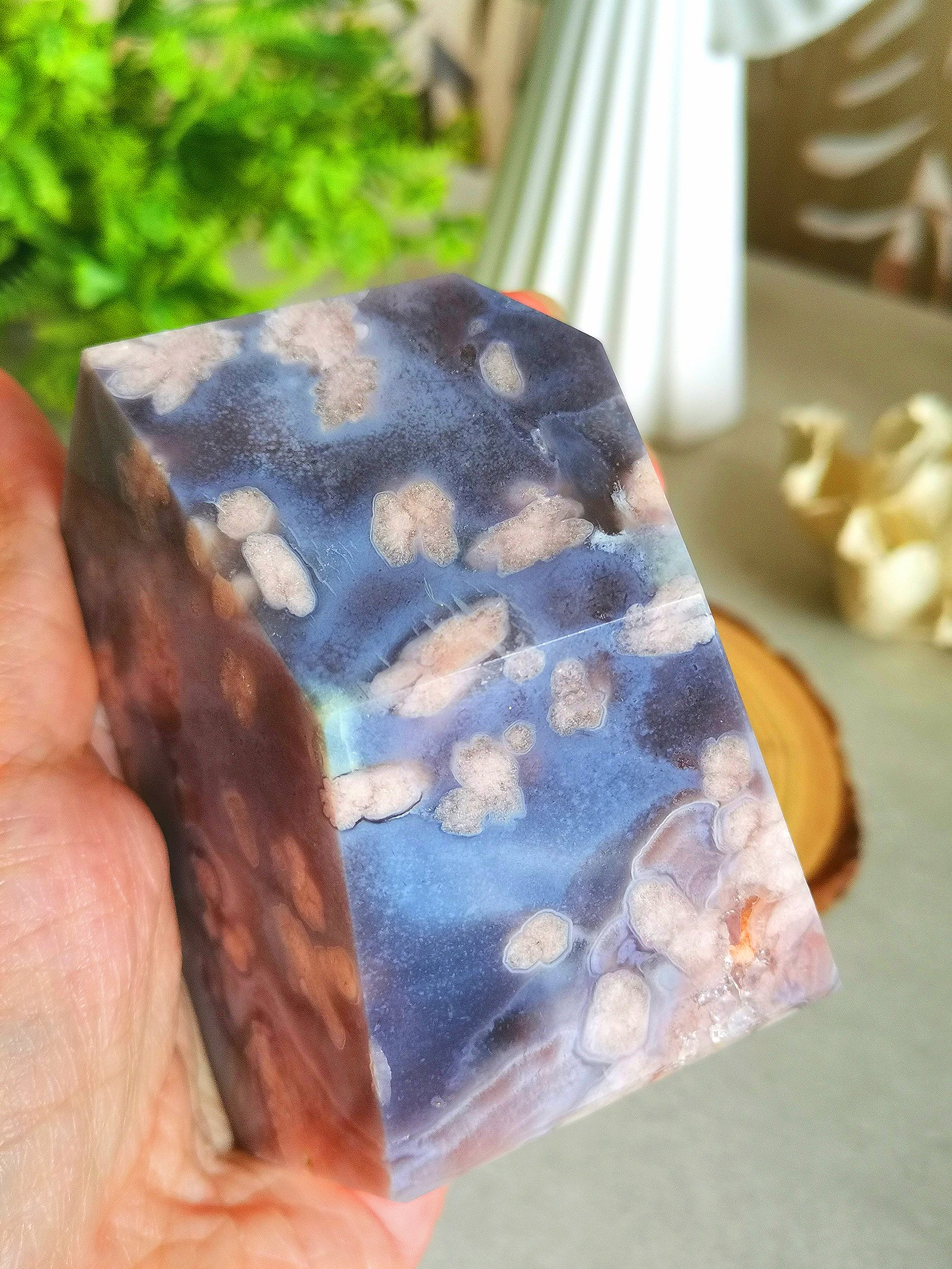 🔹 Energy, meaning, and properties: Sakura agate is prized for its natural floral aesthetic and its association with emotional softness and inner balance. The flower-like patterns symbolize growth, renewal, and natural beauty.