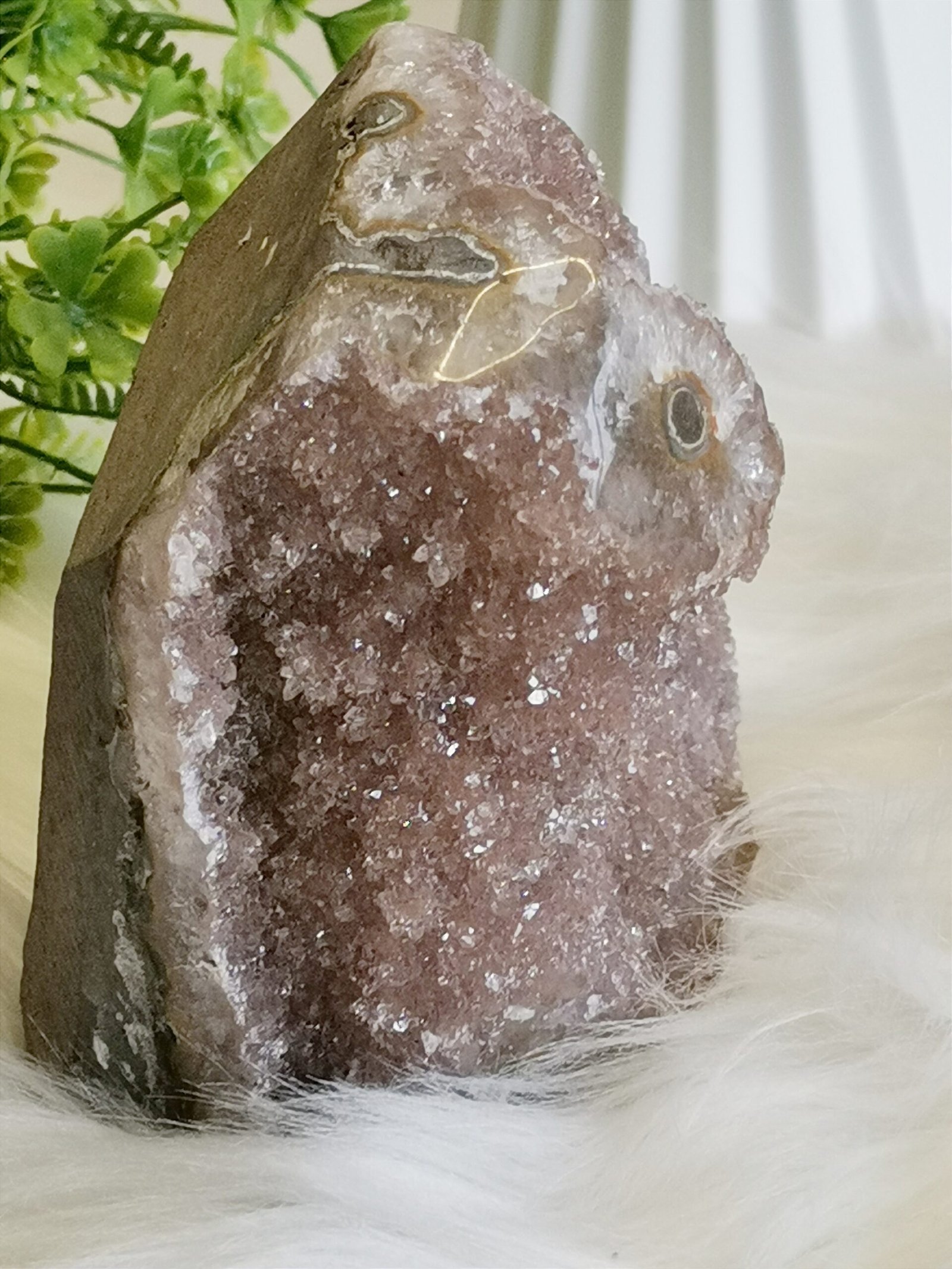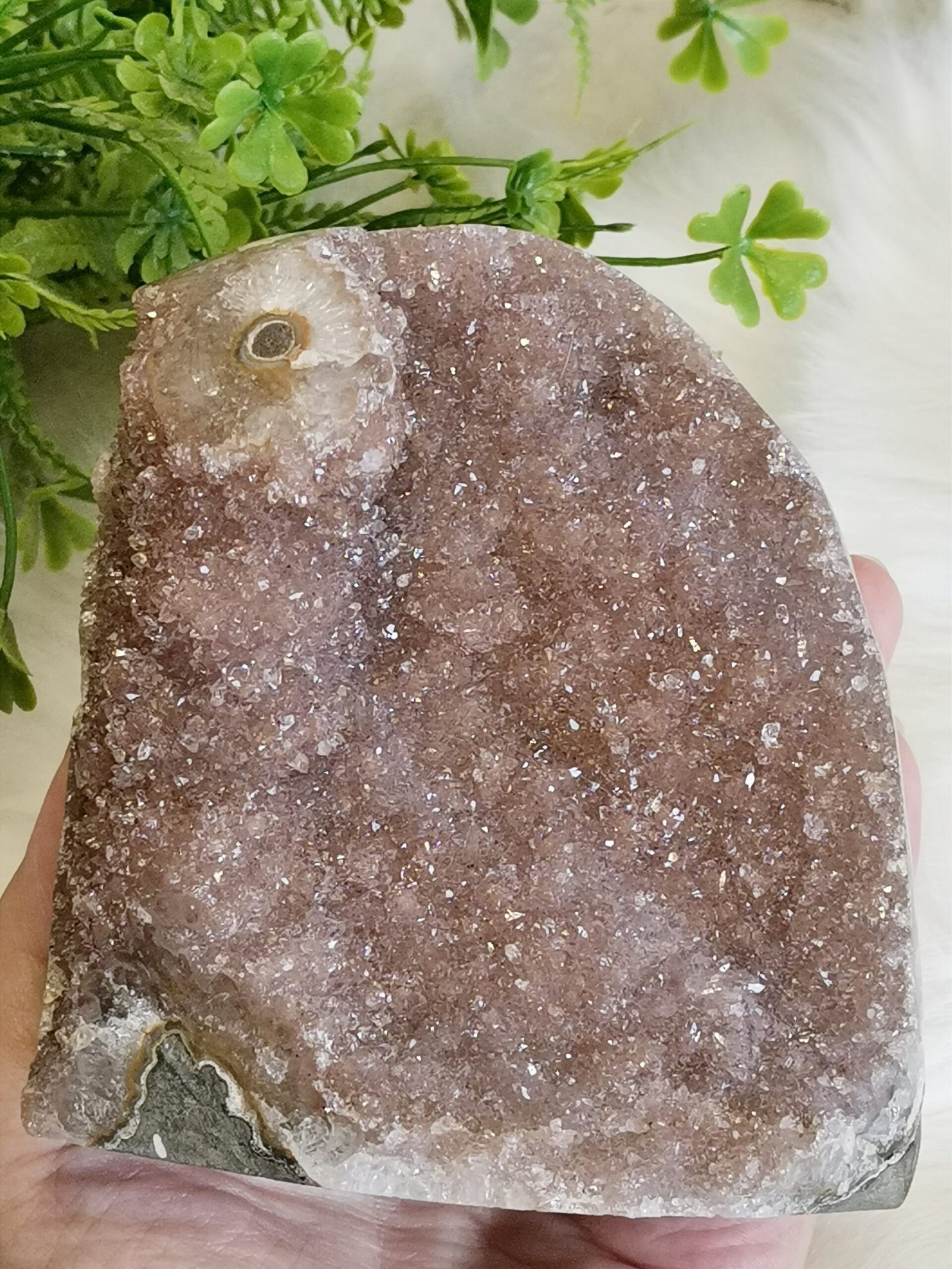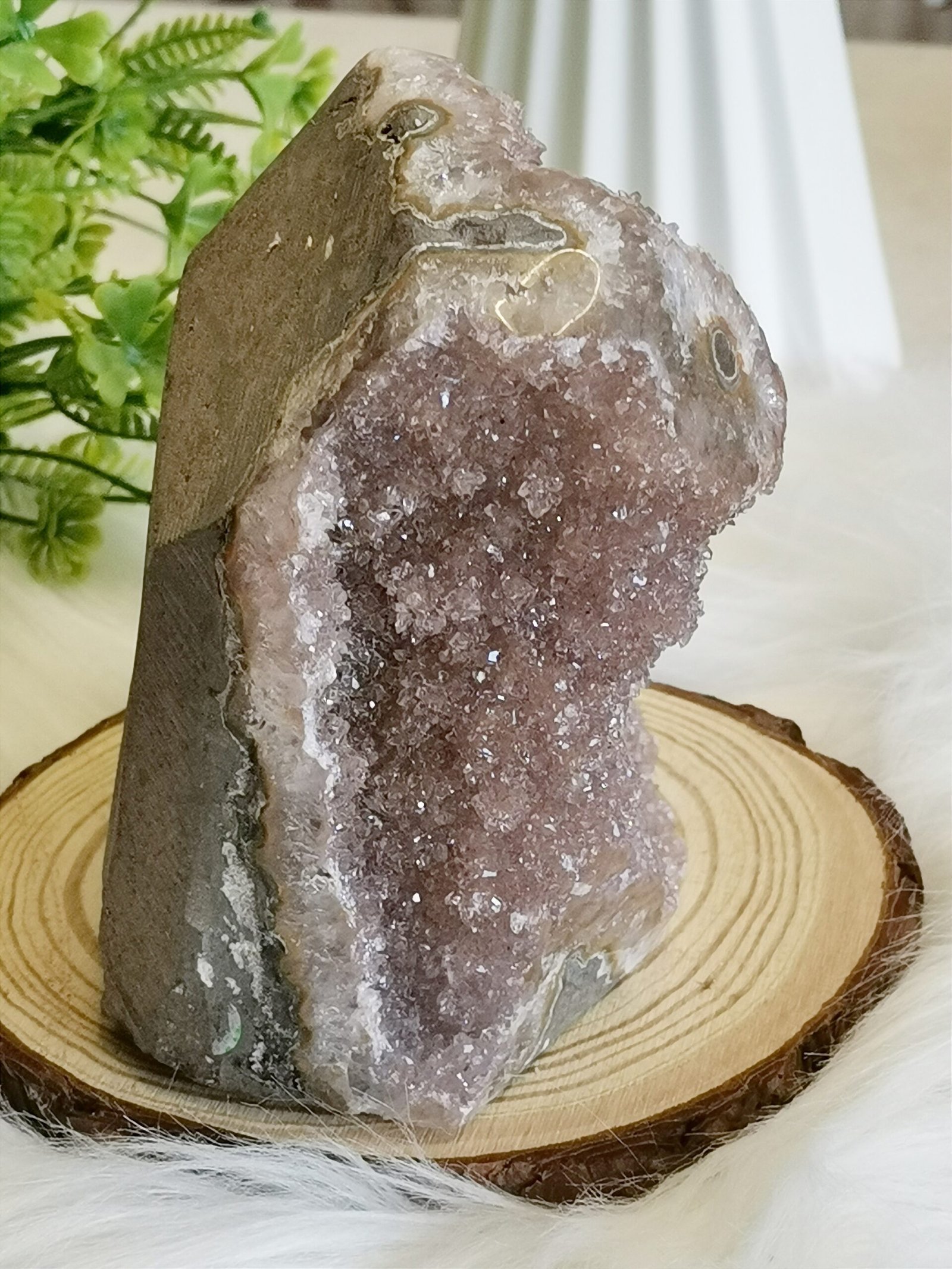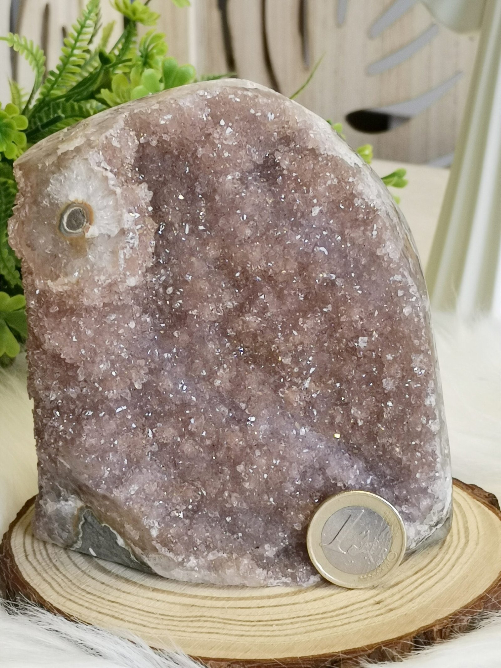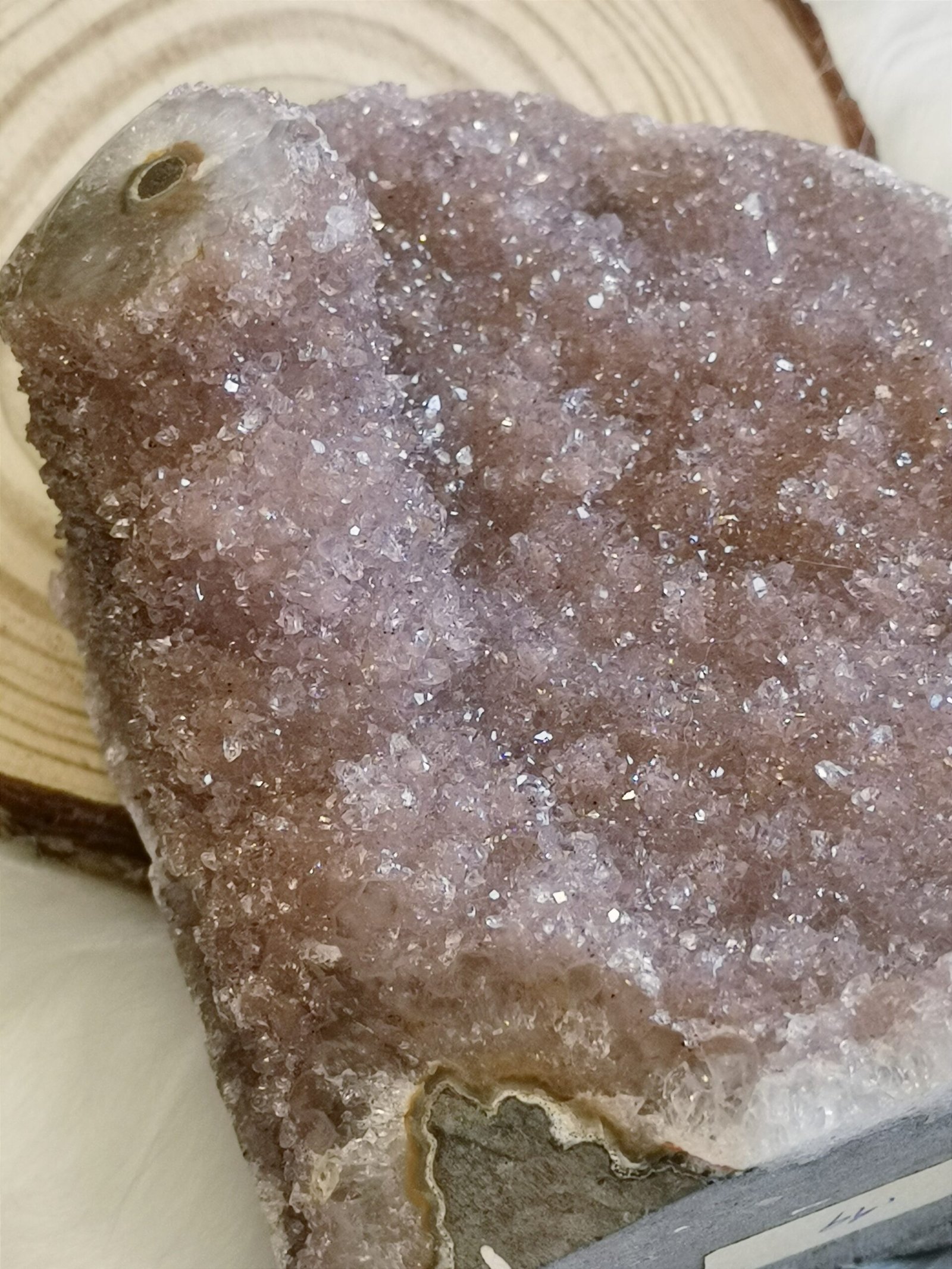 ✨Drusa de cuarzo natural con finos cristales brillantes en un elegante tono rosa lila.