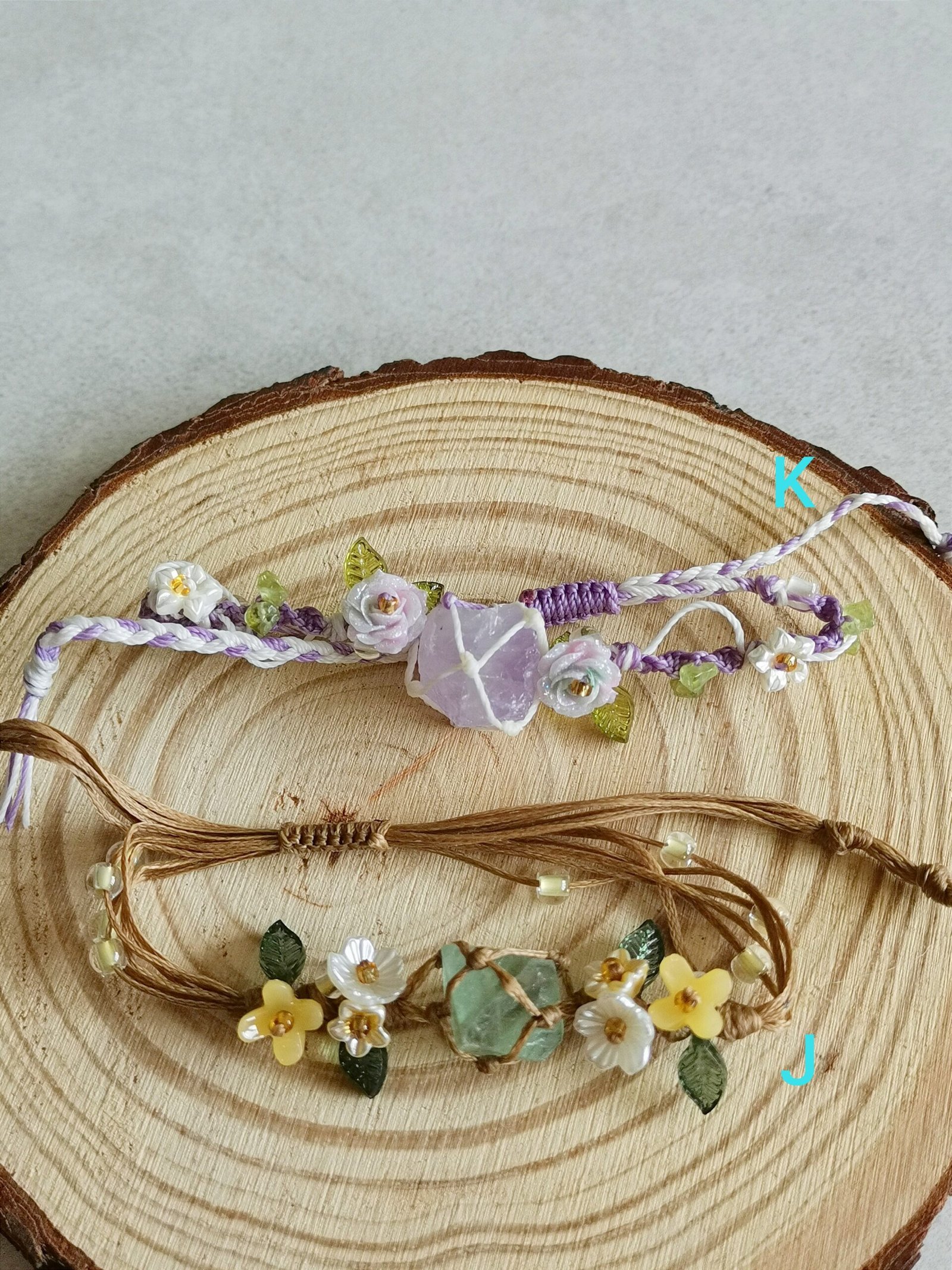Pulseras artesanales hechas a mano con cristales naturales y originales, cada una única y especial.